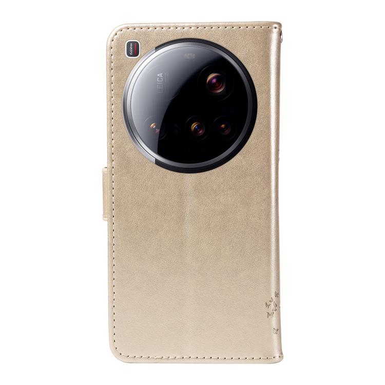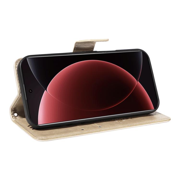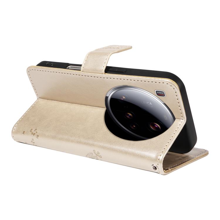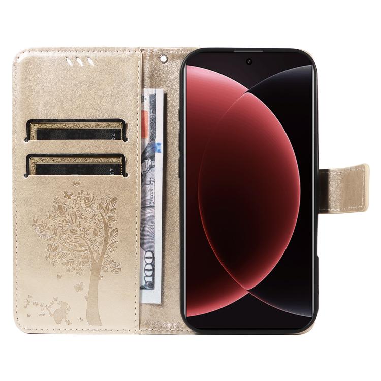 For Xiaomi 15 Ultra 5G Global Tree & Cat Embossed Pattern Flip Leather Phone Case(Gold)