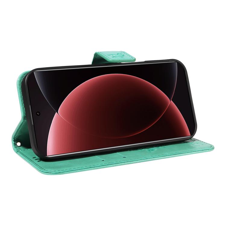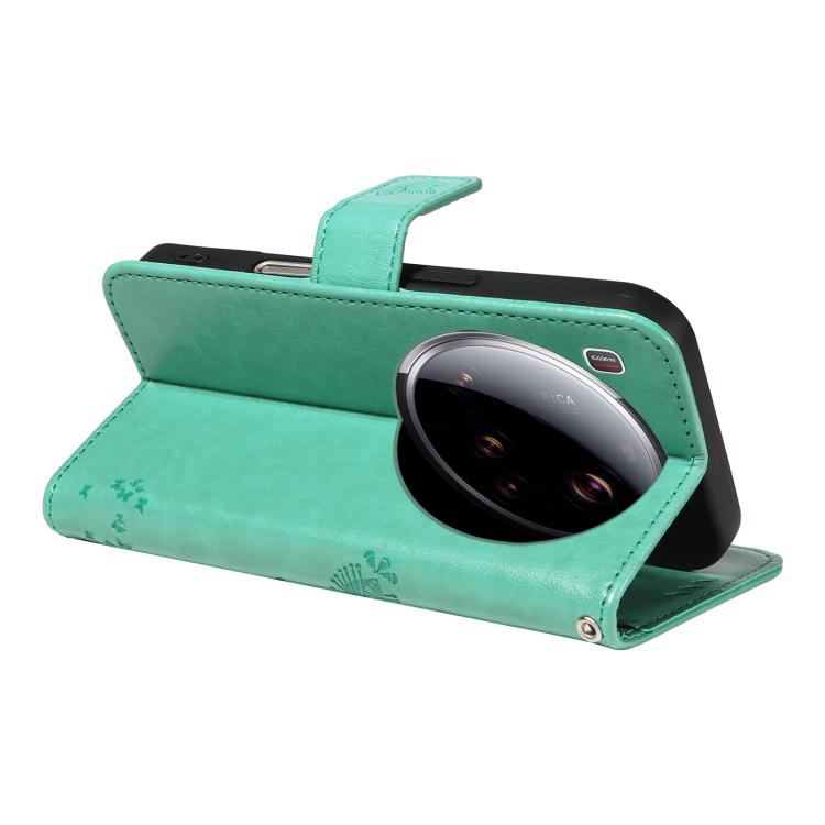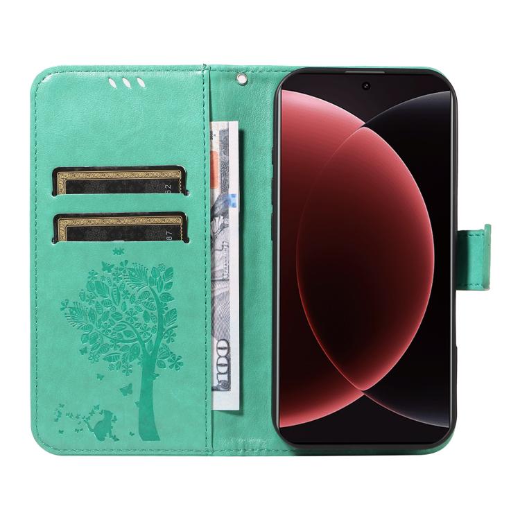 For Xiaomi 15 Ultra 5G Global Tree & Cat Embossed Pattern Flip Leather Phone Case(Green)