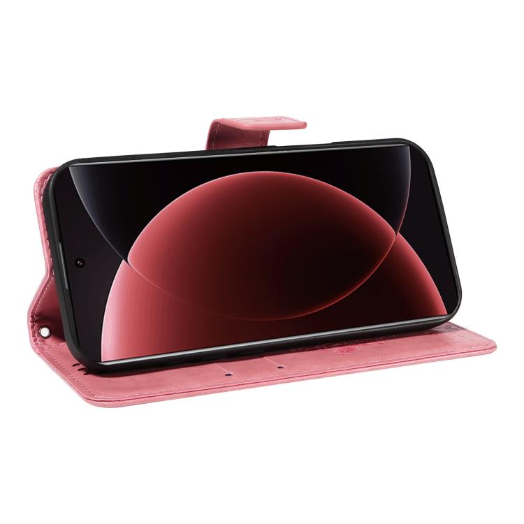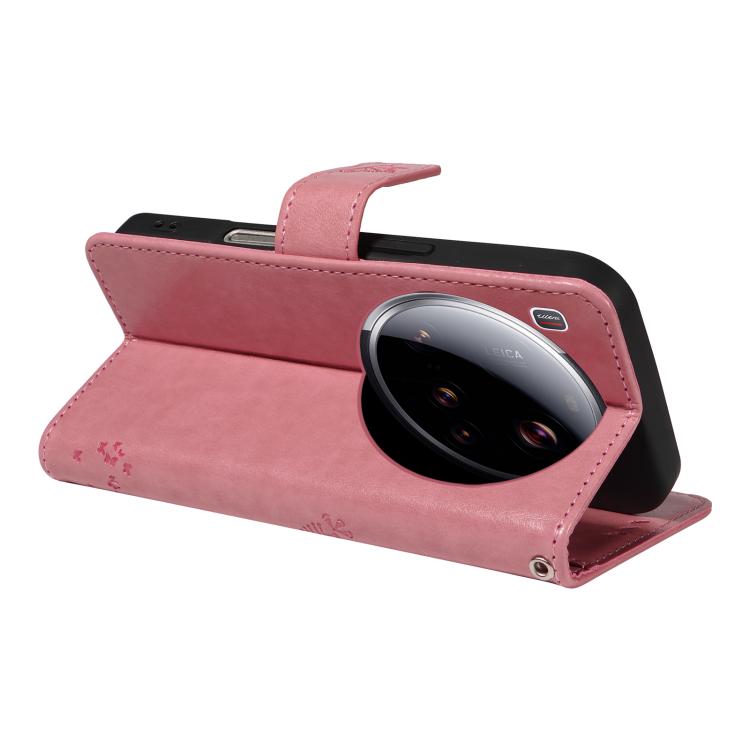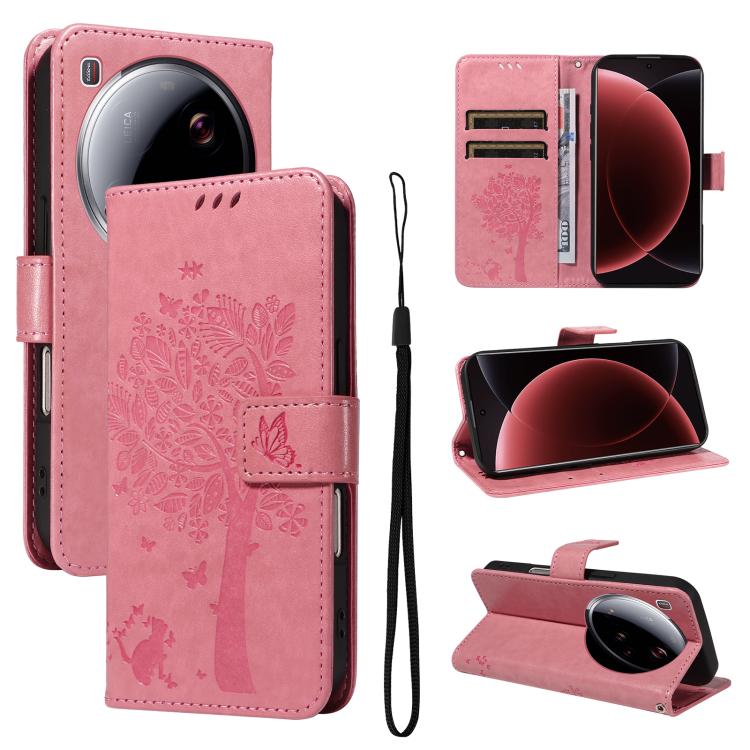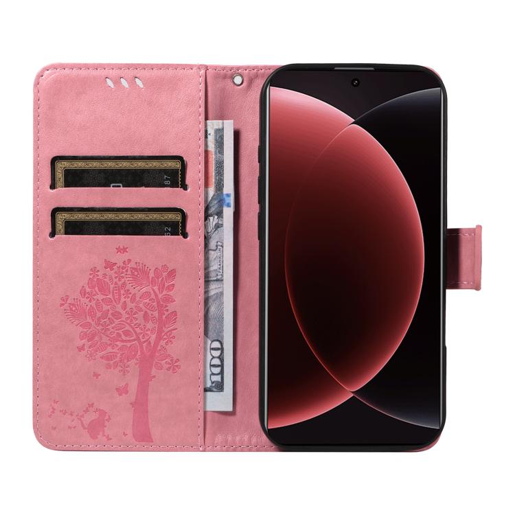 For Xiaomi 15 Ultra 5G Global Tree & Cat Embossed Pattern Flip Leather Phone Case(Pink)