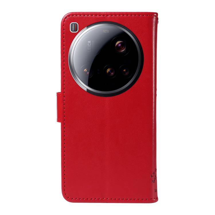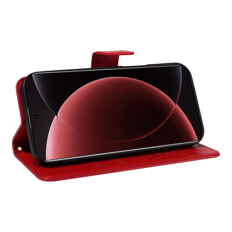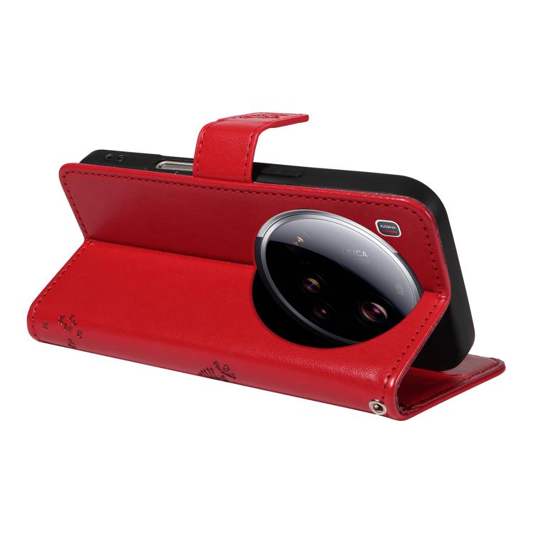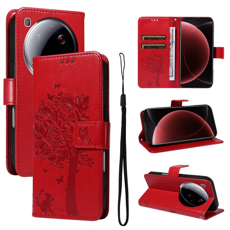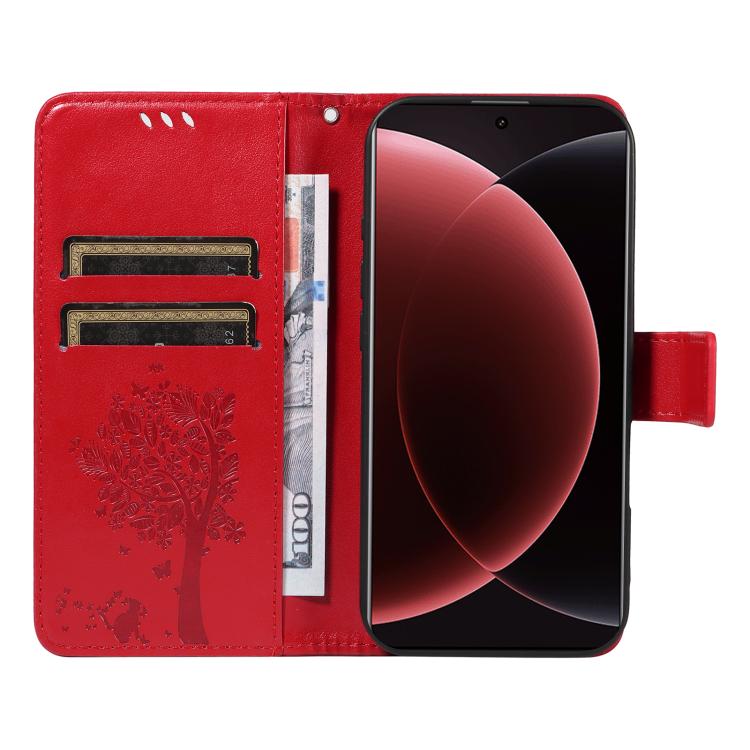 For Xiaomi 15 Ultra 5G Global Tree & Cat Embossed Pattern Flip Leather Phone Case(Red)