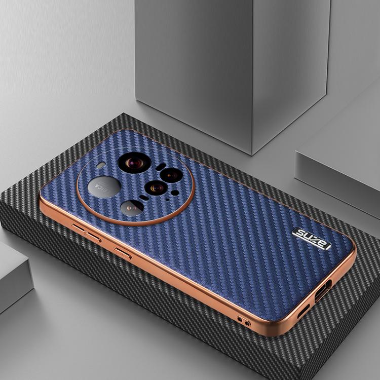 For Xiaomi 15 Ultra AZNS Electroplated Edge Carbon Fiber Texture Phone Case(Blue)