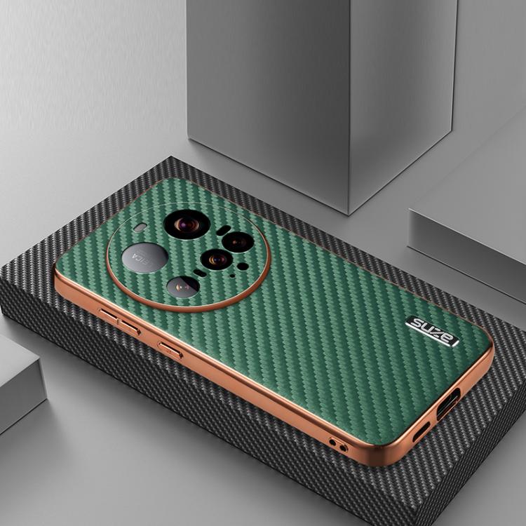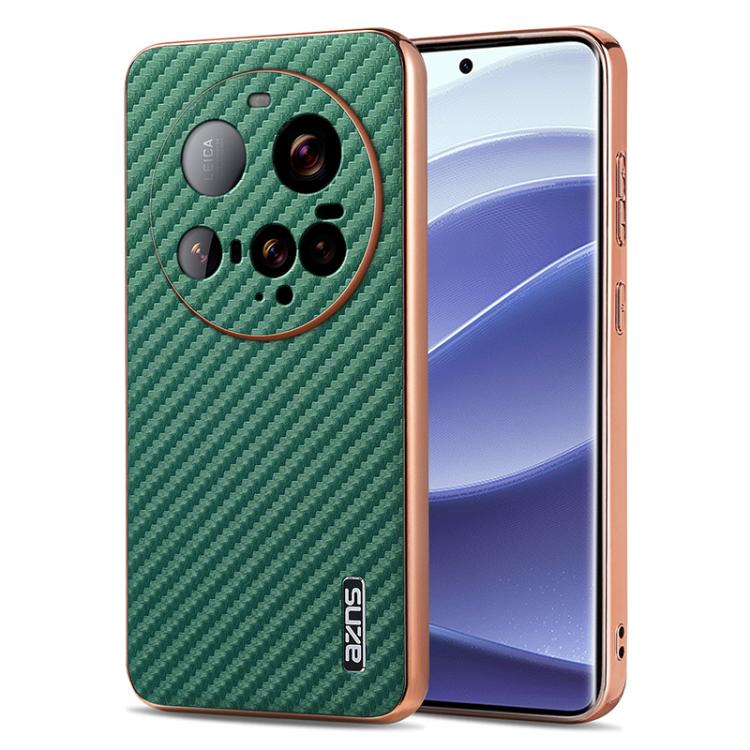 For Xiaomi 15 Ultra AZNS Electroplated Edge Carbon Fiber Texture Phone Case(Green)