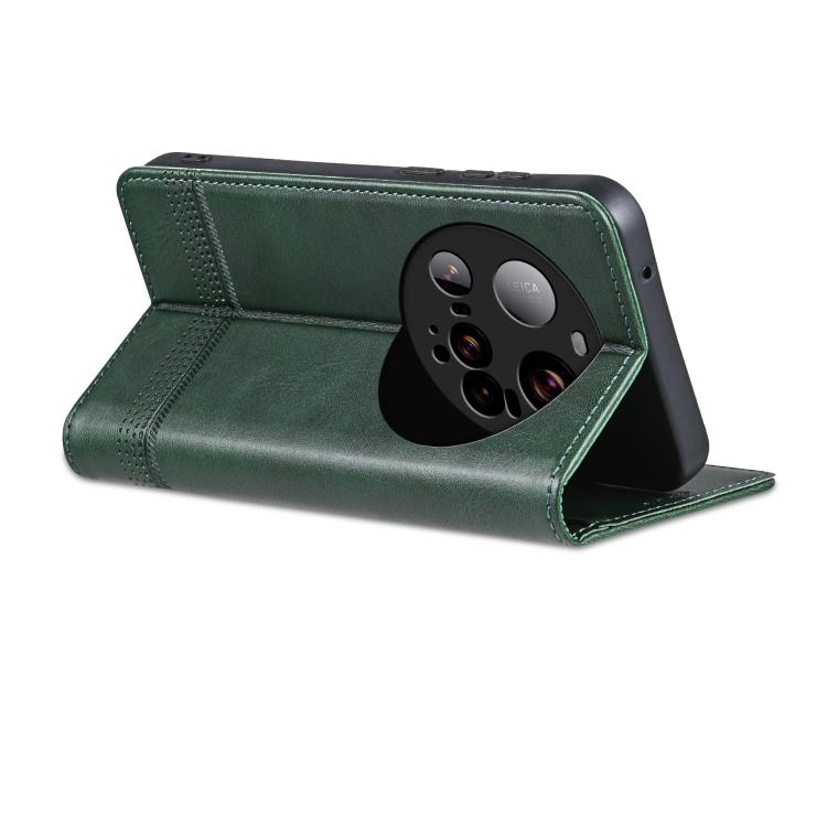 For Xiaomi 15 Ultra AZNS Magnetic Calf Texture Flip Leather Phone Case(Dark Green)