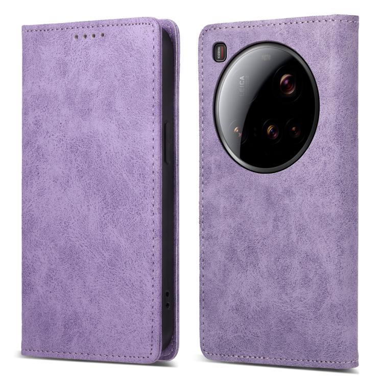 For Xiaomi 15 Ultra Business Solid Color Magnetic RFID Leather Phone Case(Purple)