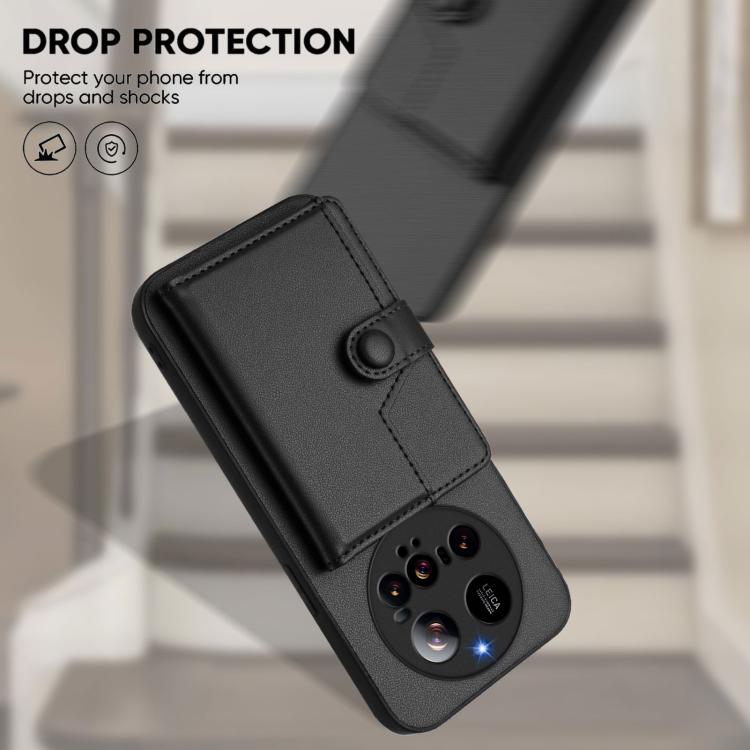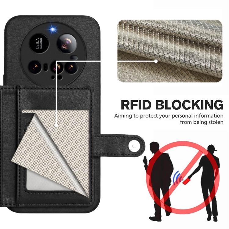 For Xiaomi 15 Ultra Button Card Bag RFID Anti-theft Phone Case(Black)
