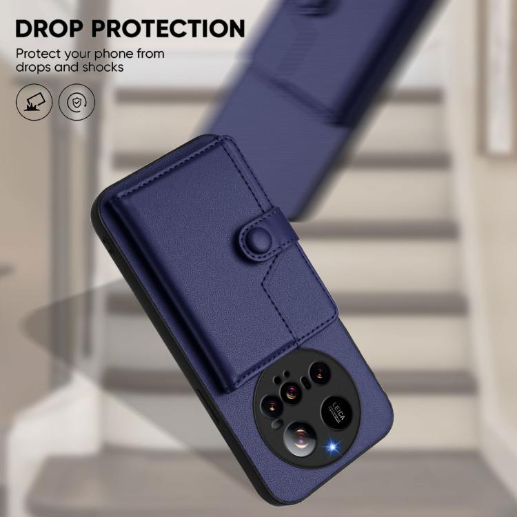 For Xiaomi 15 Ultra Button Card Bag RFID Anti-theft Phone Case(Blue)