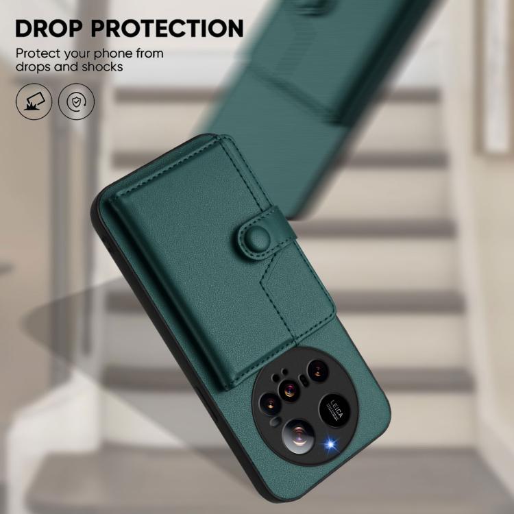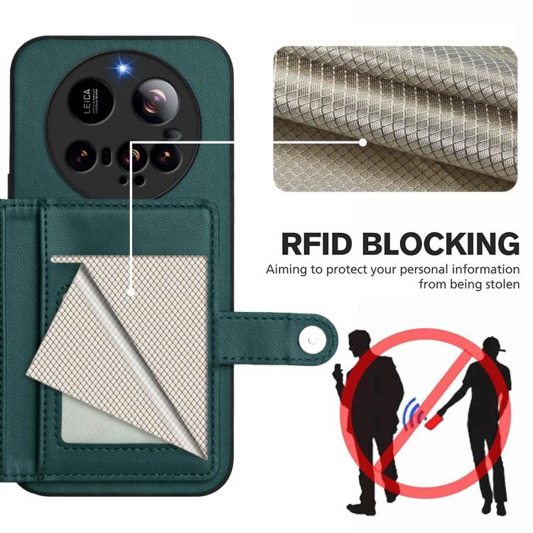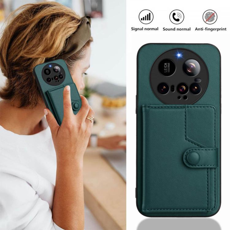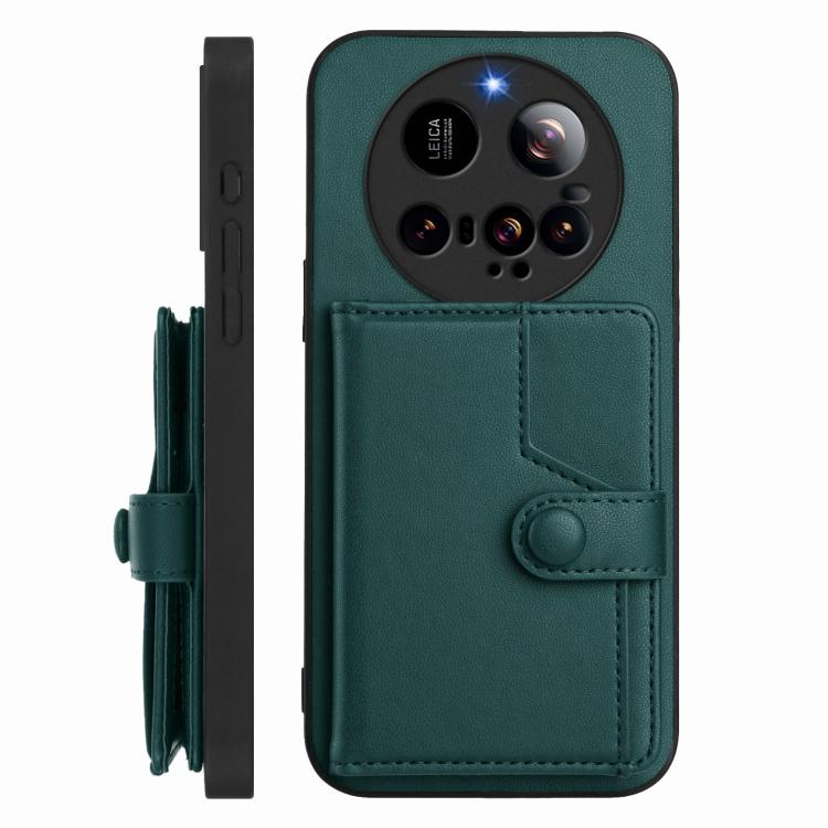For Xiaomi 15 Ultra Button Card Bag RFID Anti-theft Phone Case(Green)
