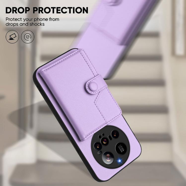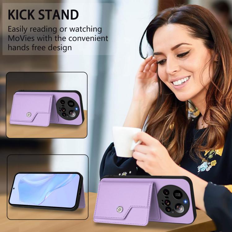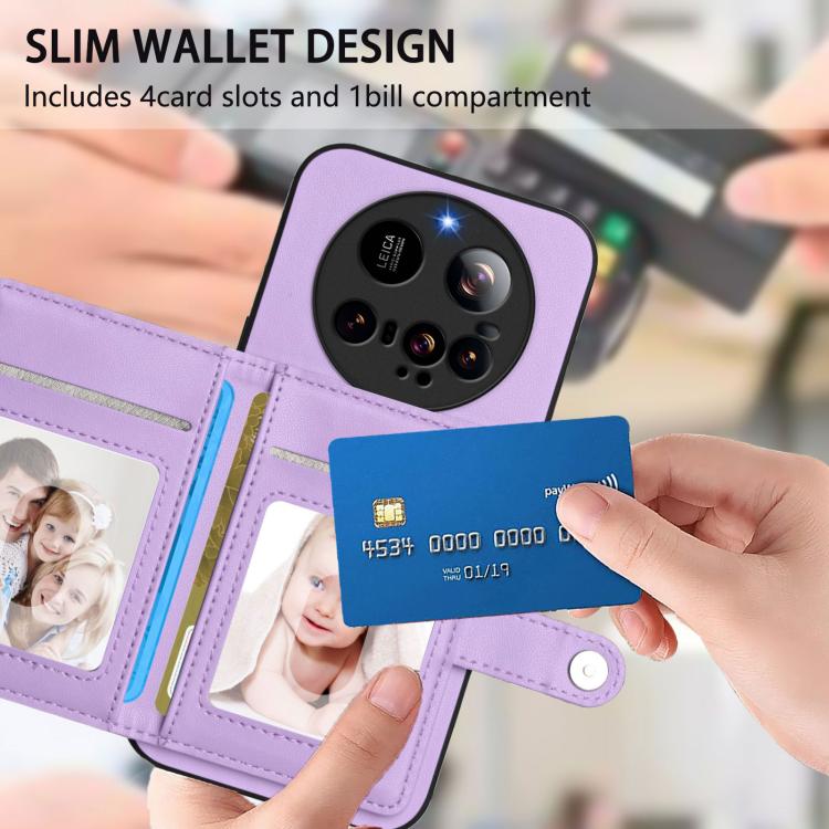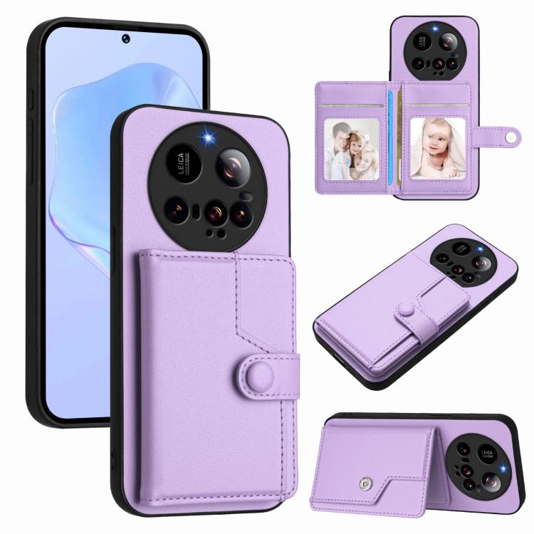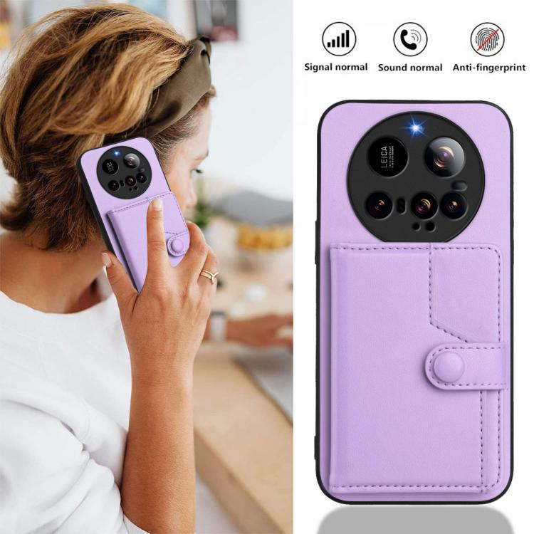 For Xiaomi 15 Ultra Button Card Bag RFID Anti-theft Phone Case(Purple)