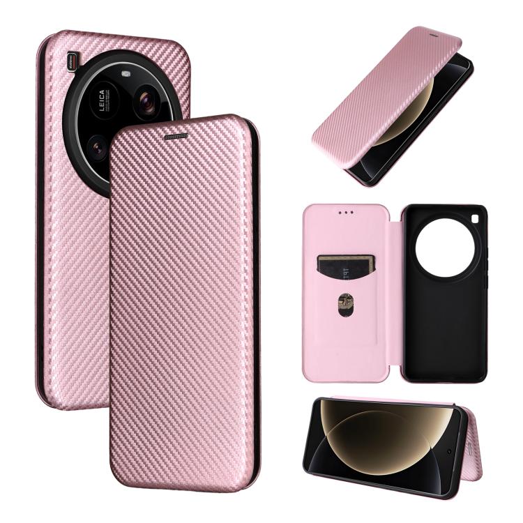 For Xiaomi 15 Ultra Carbon Fiber Texture Flip Leather Phone Case(Pink)