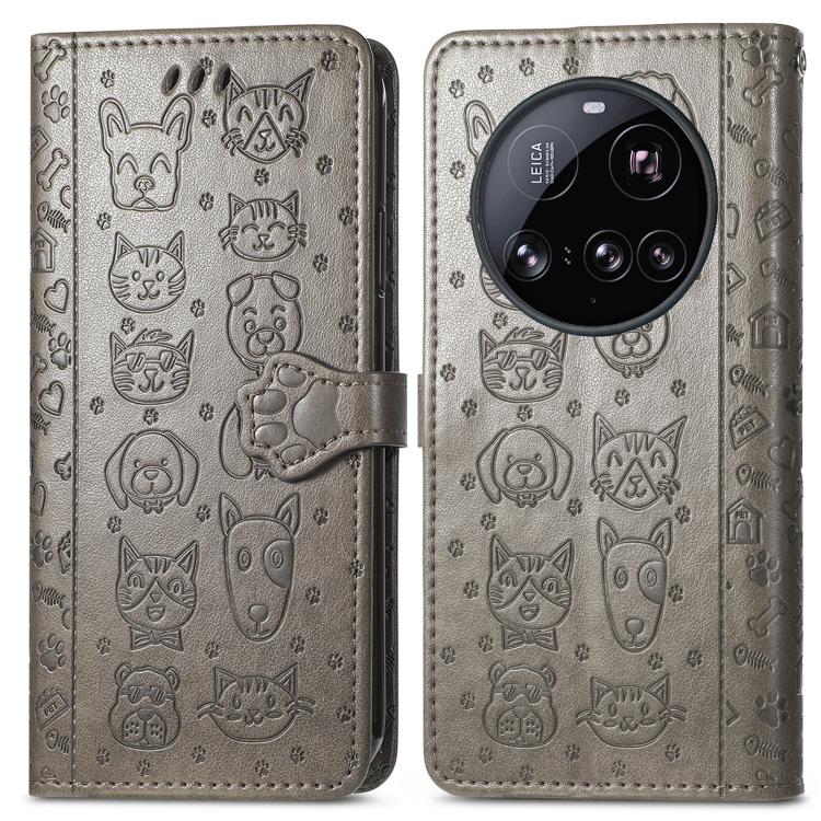 For Xiaomi 15 Ultra Cat and Dog Embossed Leather Phone Case(Gray)