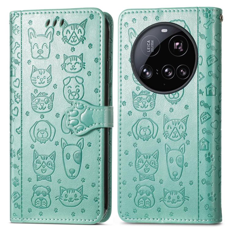 For Xiaomi 15 Ultra Cat and Dog Embossed Leather Phone Case(Green)