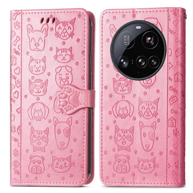 For Xiaomi 15 Ultra Cat and Dog Embossed Leather Phone Case(Pink)