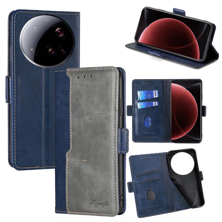 For Xiaomi 15 Ultra Contrast Color Side Buckle Leather Phone Case(Blue + Grey)