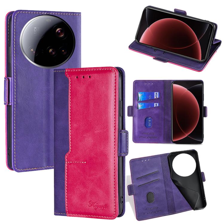 For Xiaomi 15 Ultra Contrast Color Side Buckle Leather Phone Case(Purple + Rose Red)