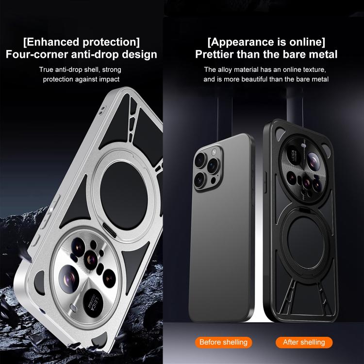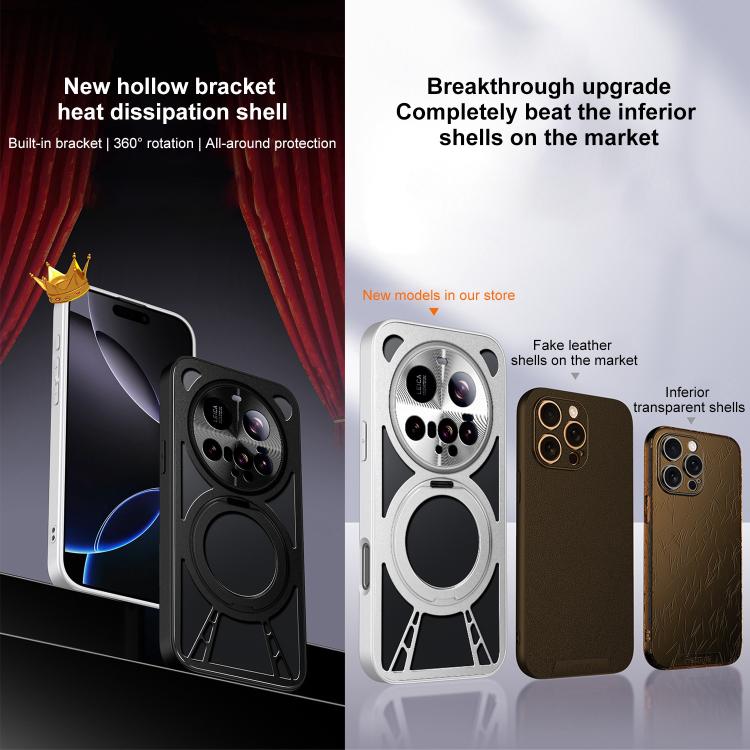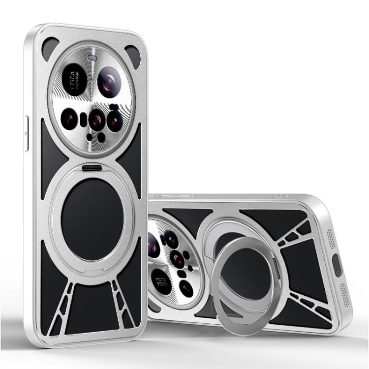 For Xiaomi 15 Ultra Cooling Hollow Metal Holder MagSafe Phone Case(Silver)