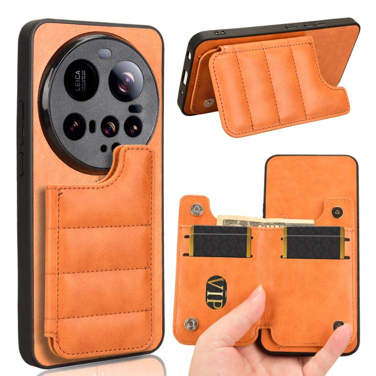 For Xiaomi 15 Ultra Cow Pattern Sewing Card Bag Phone Case(Orange)
