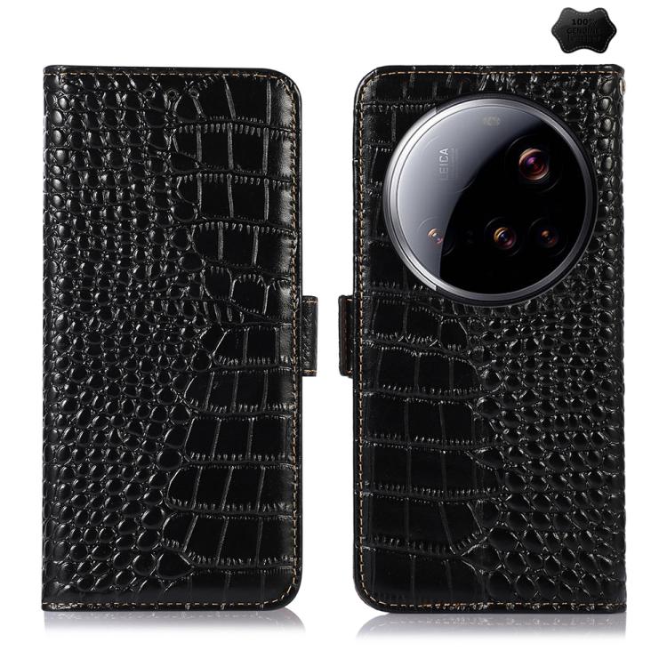 For Xiaomi 15 Ultra Crocodile Top Layer Cowhide Leather Phone Case(Black)