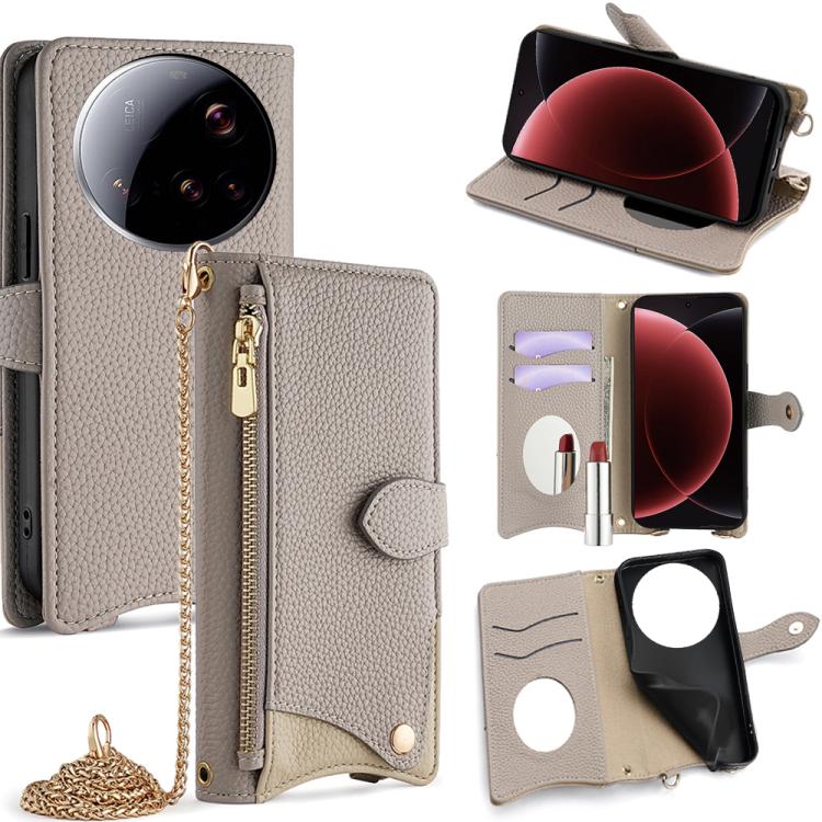 For Xiaomi 15 Ultra Crossbody Chain Fishtail Litchi Leather Phone Case(Grey)
