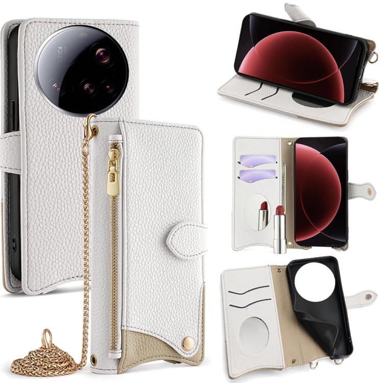For Xiaomi 15 Ultra Crossbody Chain Fishtail Litchi Leather Phone Case(White)