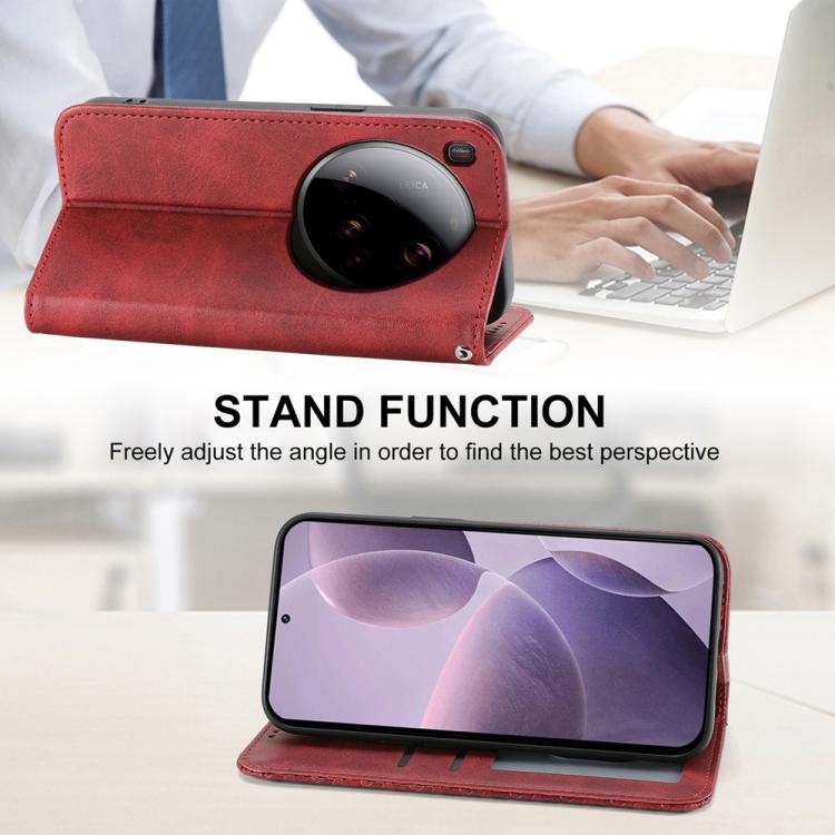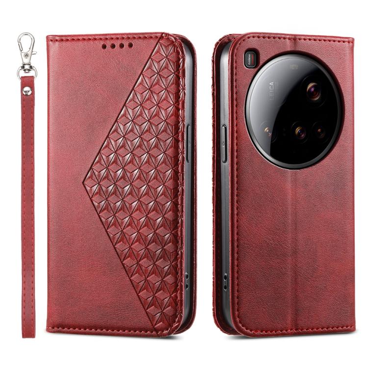 For Xiaomi 15 Ultra Cubic Grid Calf Texture Magnetic Leather Phone Case(Red)