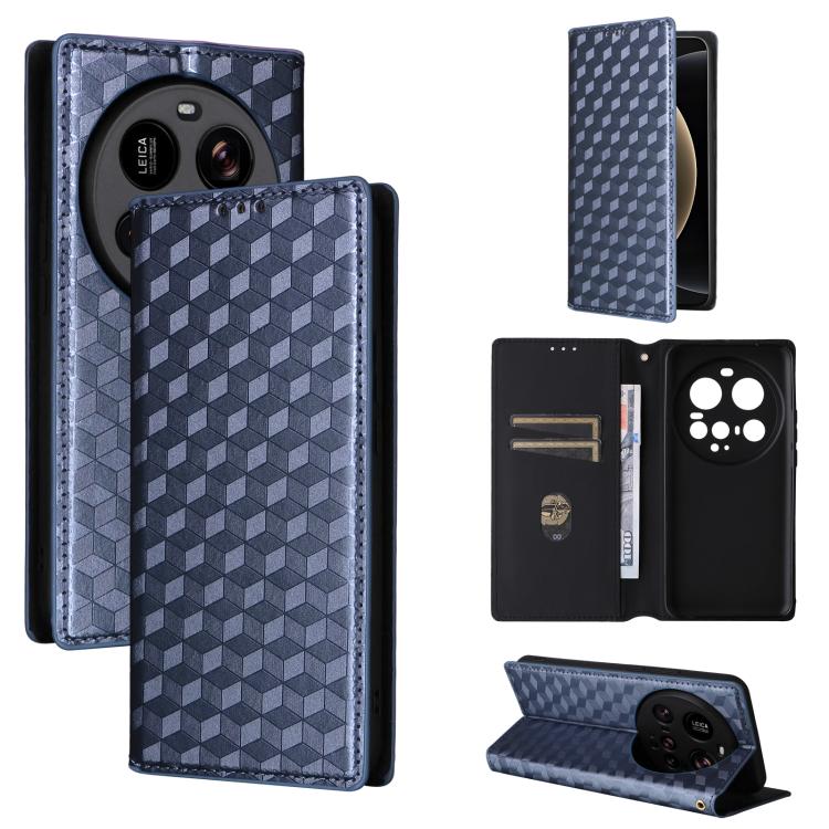 For Xiaomi 15 Ultra Cubic Grid Texture Flip Leather Phone Case(Blue)