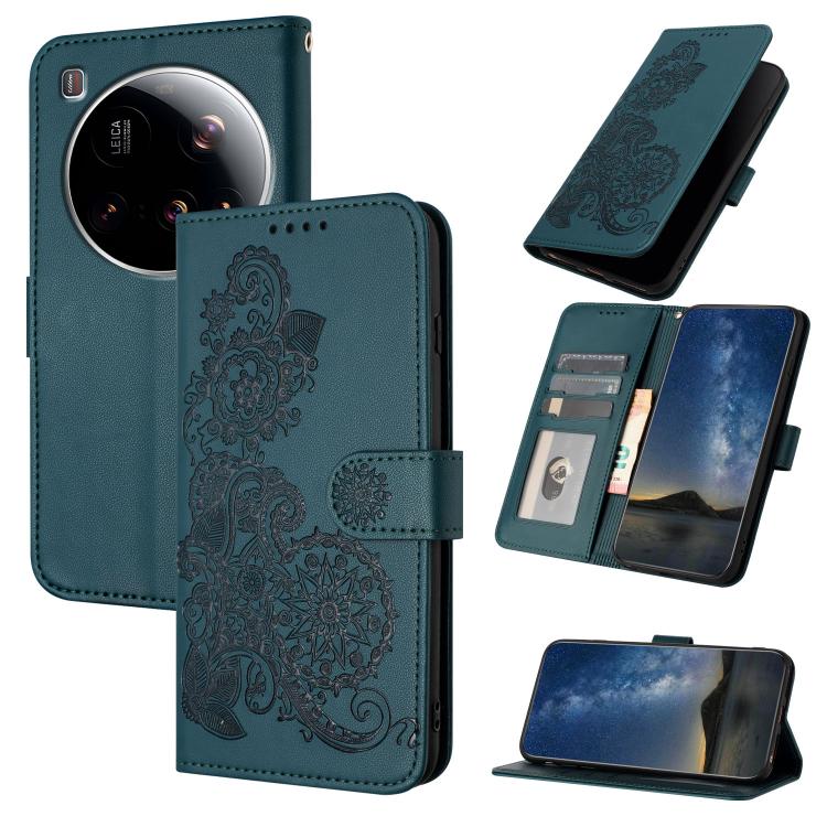 For Xiaomi 15 Ultra Datura Flower Embossed Flip Leather Phone Case(Dark Green)