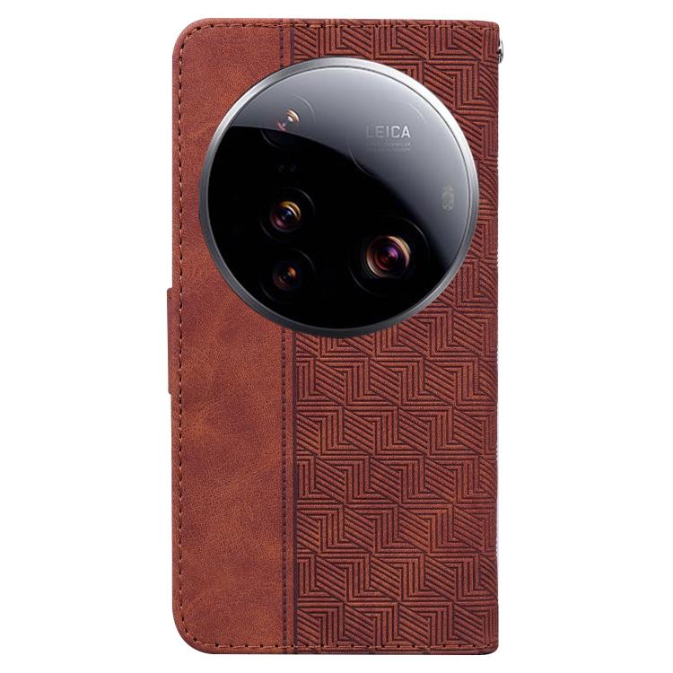 For Xiaomi 15 Ultra Geometric Embossed Leather Phone Case(Brown)