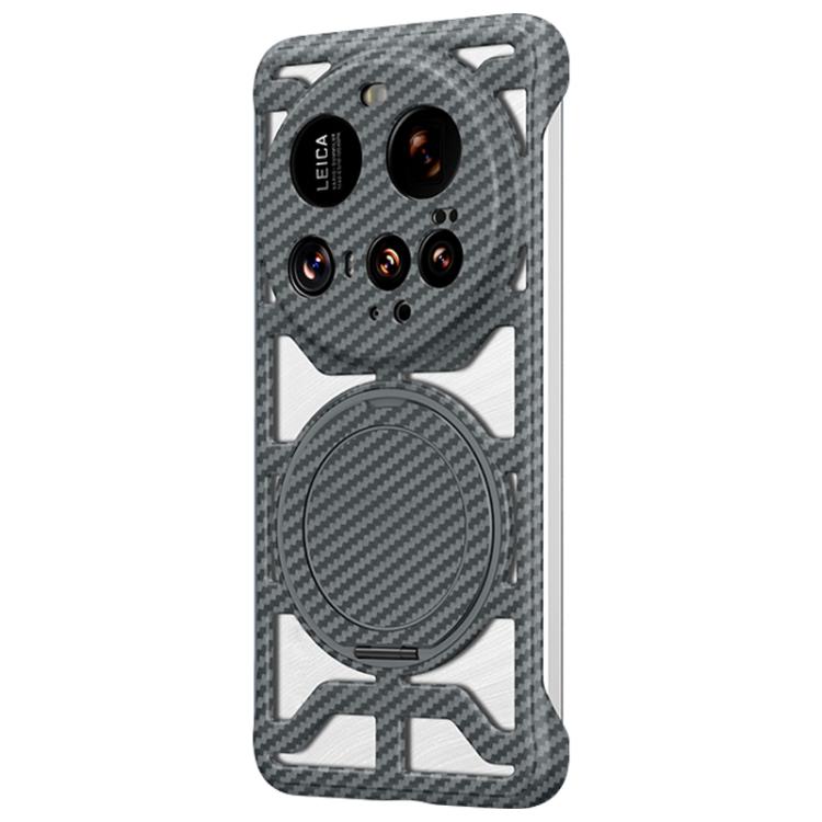 For Xiaomi 15 Ultra Hollow Carbon Fiber Rotating Bracket MagSafe Phone Case(Grey)