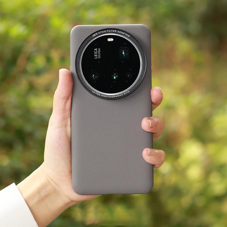 For Xiaomi 15 Ultra JSR Plain Leather Phone Case with Adapter Ring(Grey)