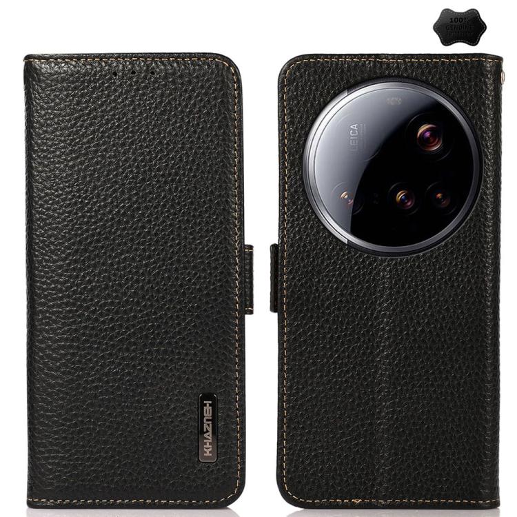 For Xiaomi 15 Ultra KHAZNEH Side-Magnetic Litchi Genuine Leather RFID Phone Case(Black)