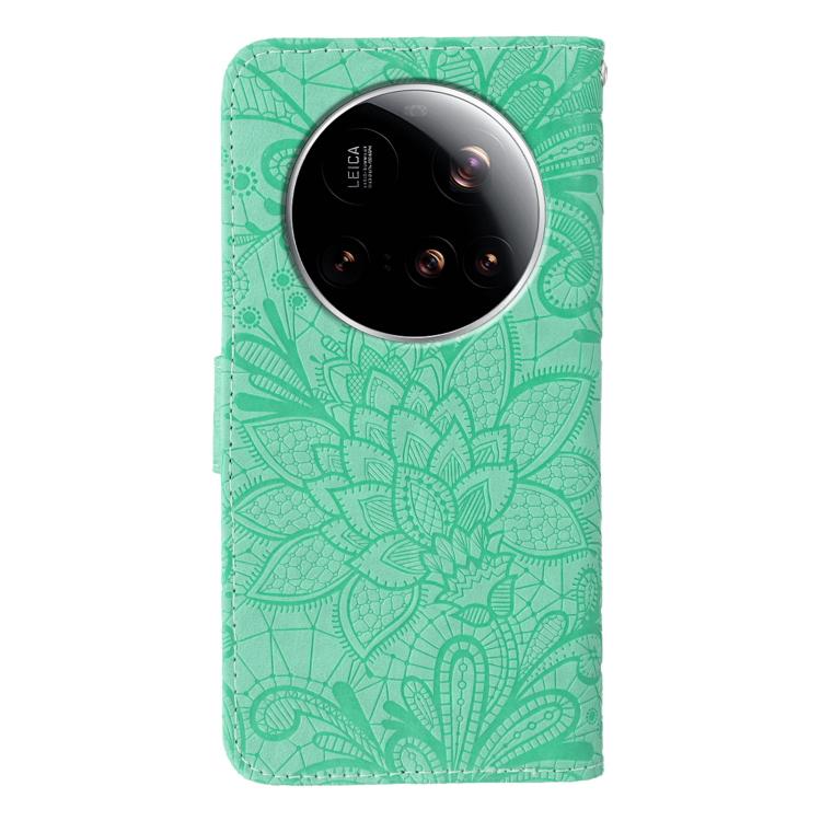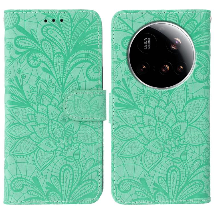For Xiaomi 15 Ultra Lace Flower Embossing Flip Leather Phone Case(Green)