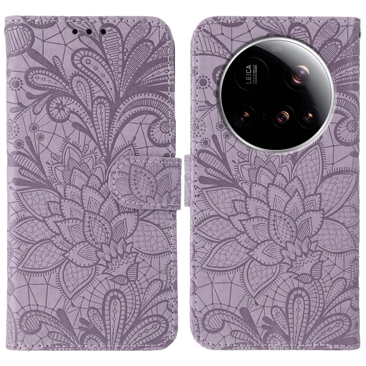 For Xiaomi 15 Ultra Lace Flower Embossing Flip Leather Phone Case(Purple)