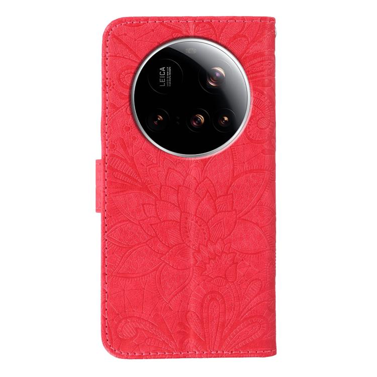 For Xiaomi 15 Ultra Lace Flower Embossing Flip Leather Phone Case(Red)