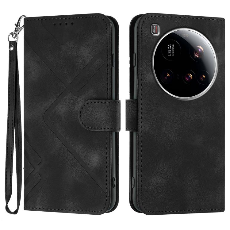 For Xiaomi 15 Ultra Line Pattern Skin Feel Leather Phone Case(Black)