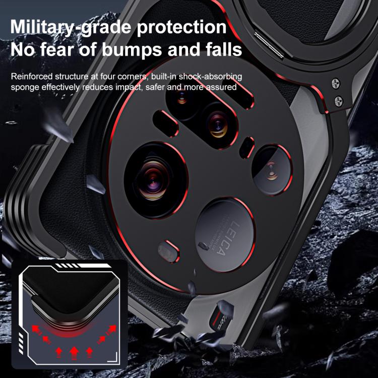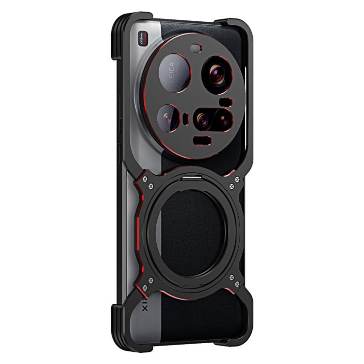 For Xiaomi 15 Ultra Mechanical Arm Borderless MagSafe Holder Metal Phone Case(Black Red)