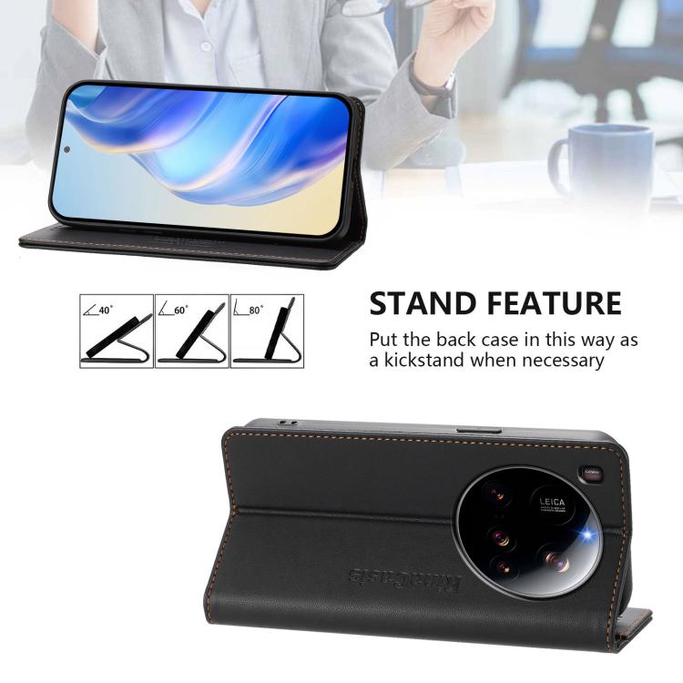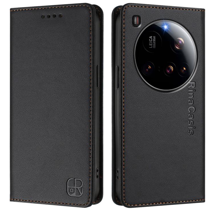 For Xiaomi 15 Ultra RC01 Dual-Folded Magnetic Suction RFID Leather Phone Case(Black)