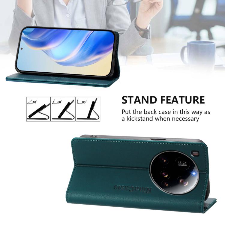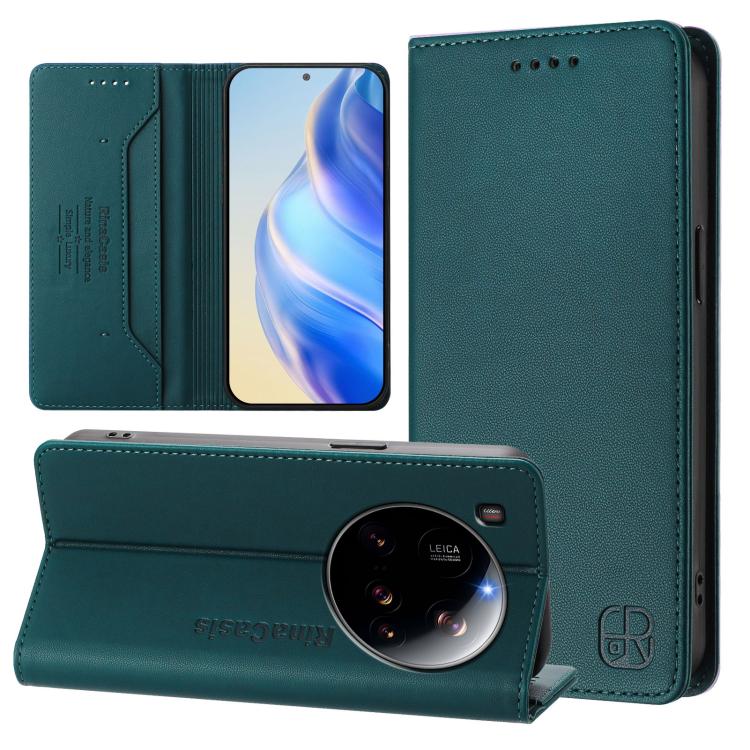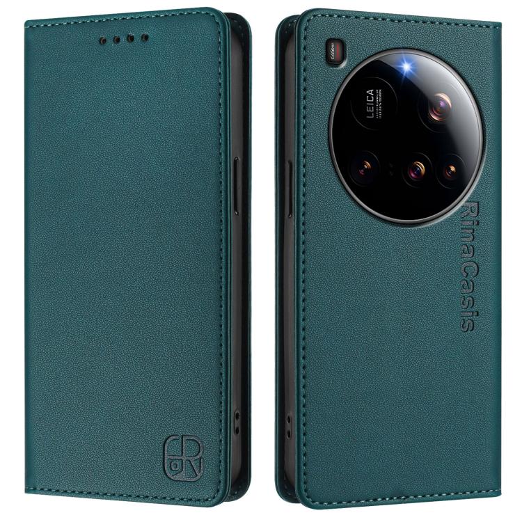 For Xiaomi 15 Ultra RC01 Dual-Folded Magnetic Suction RFID Leather Phone Case(Dark Green)