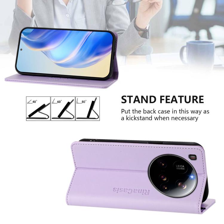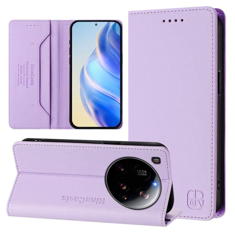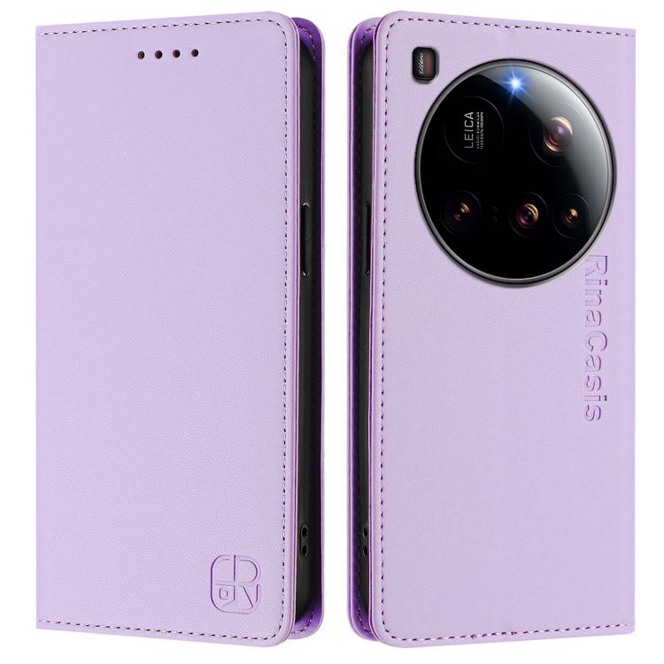 For Xiaomi 15 Ultra RC01 Dual-Folded Magnetic Suction RFID Leather Phone Case(Light Purple)
