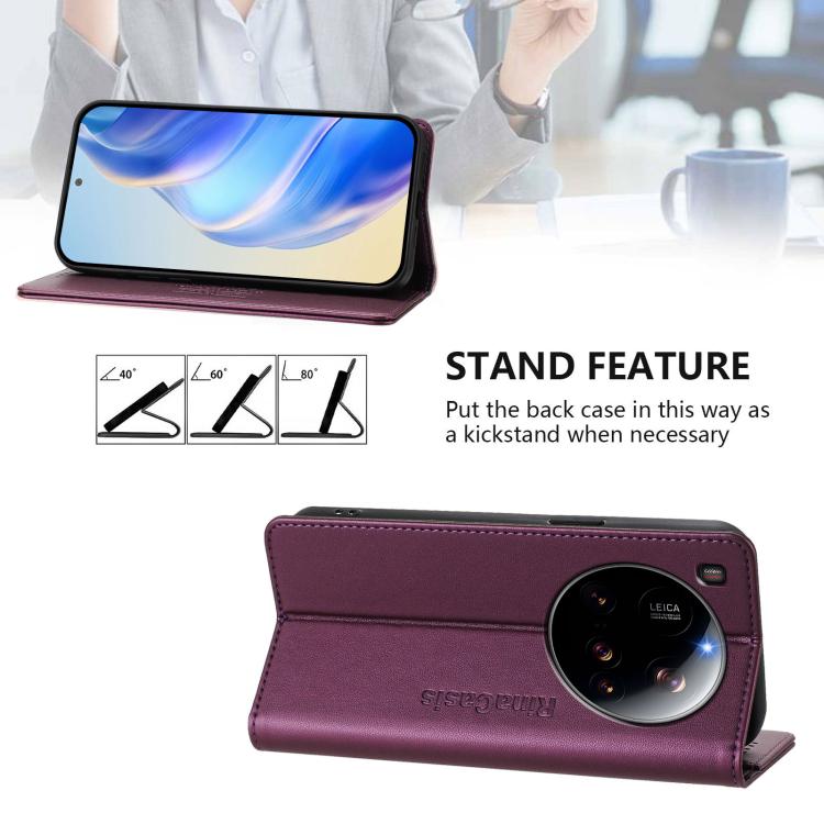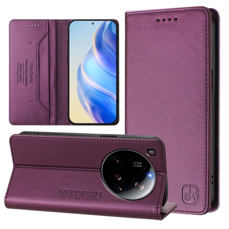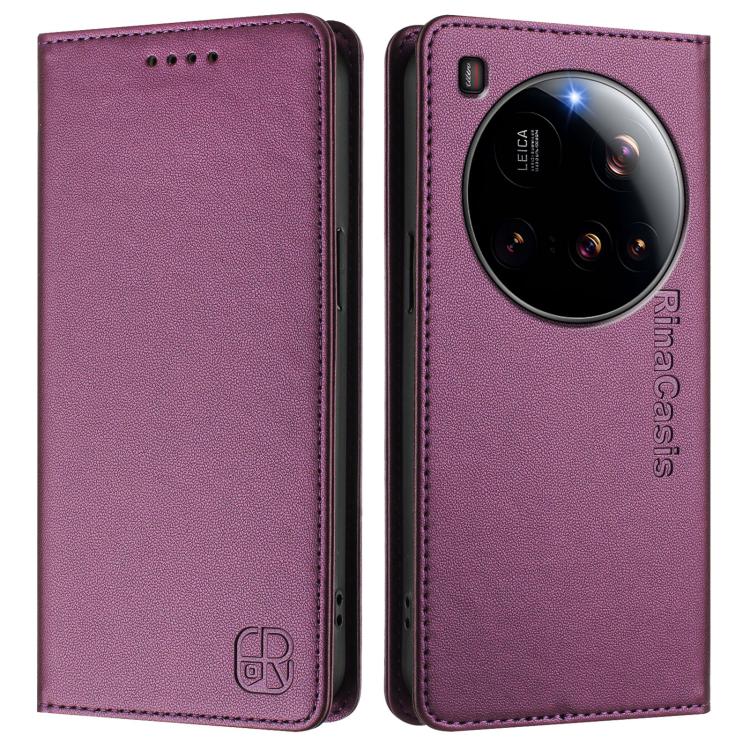 For Xiaomi 15 Ultra RC01 Dual-Folded Magnetic Suction RFID Leather Phone Case(Violet)