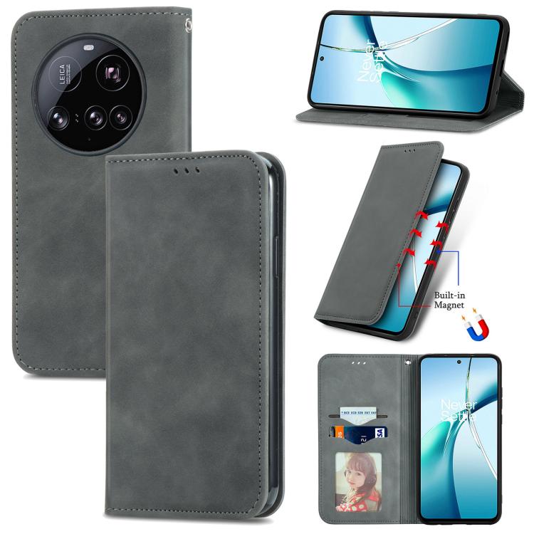 For Xiaomi 15 Ultra Retro Skin Feel Magnetic Flip Leather Phone Case(Gray)