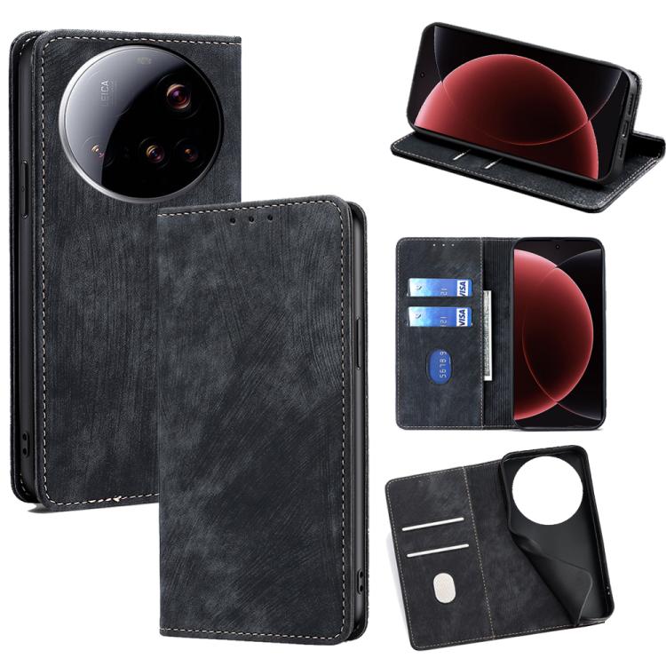 For Xiaomi 15 Ultra RFID Anti-theft Brush Magnetic Leather Phone Case(Black)