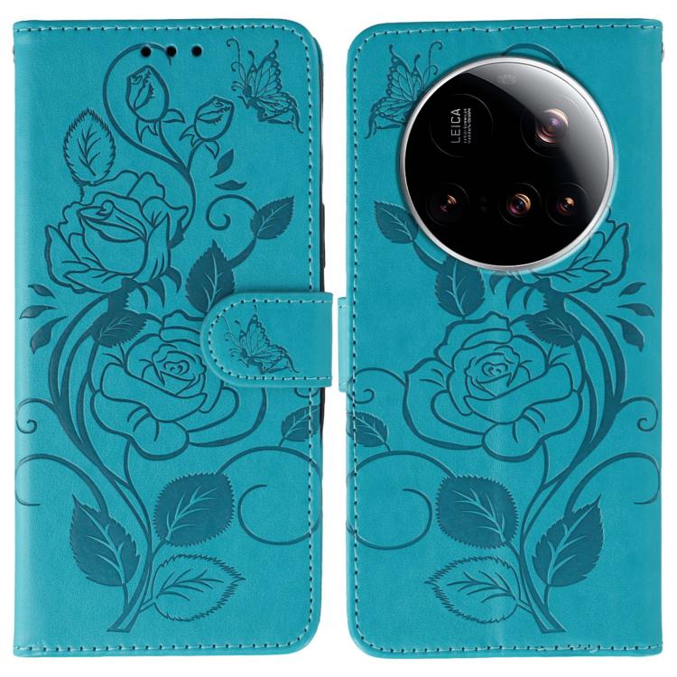 For Xiaomi 15 Ultra Rose Butterfly Embossed Leather Phone Case(Blue)