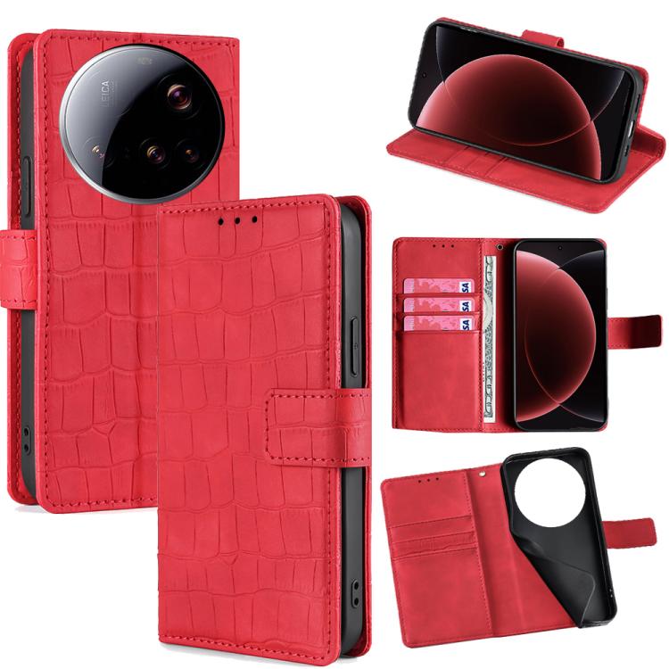 For Xiaomi 15 Ultra Skin Feel Crocodile Magnetic Clasp Leather Phone Case(Red)