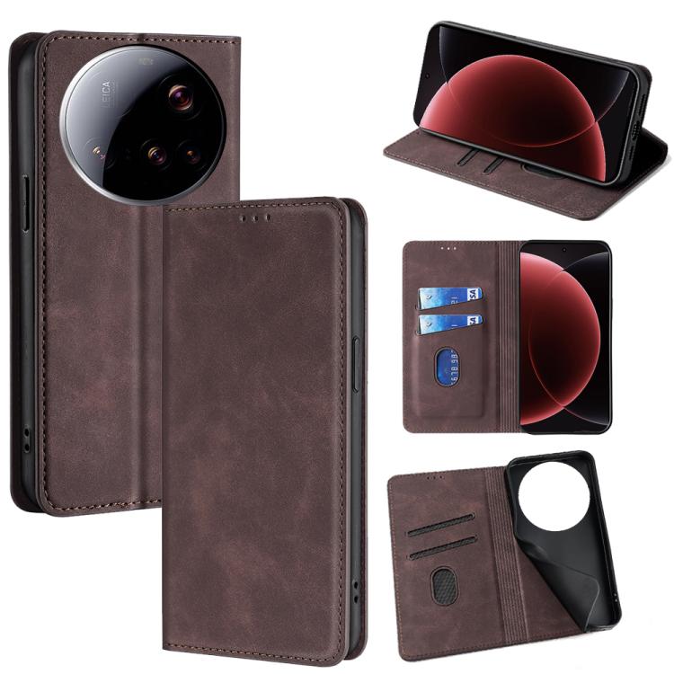 For Xiaomi 15 Ultra Skin Feel Magnetic Leather Phone Case(Dark Brown)