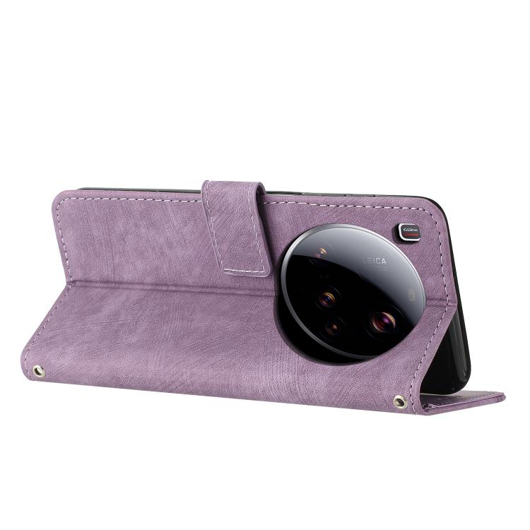 For Xiaomi 15 Ultra Skin Feel Stripe Pattern Leather Phone Case with Lanyard(Purple)