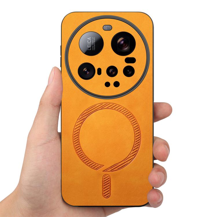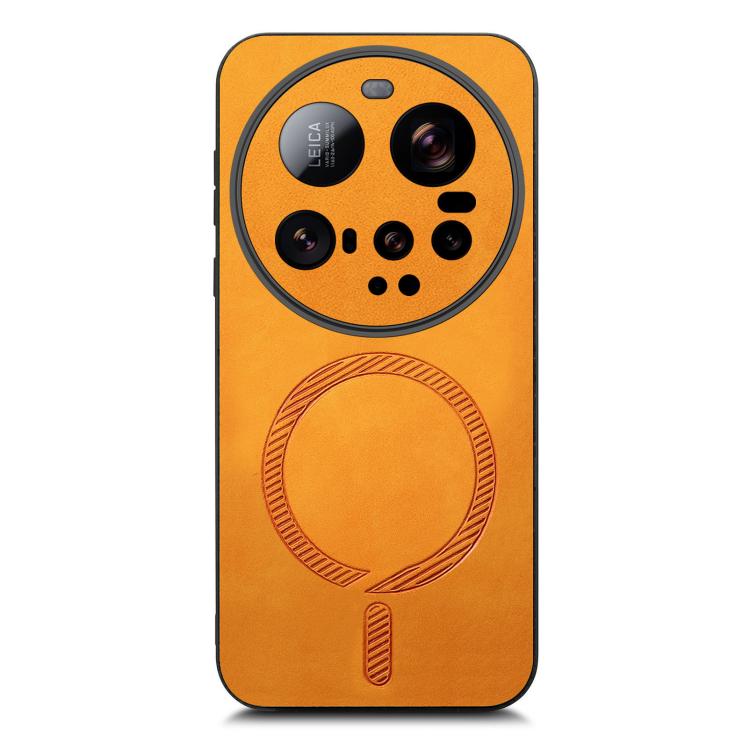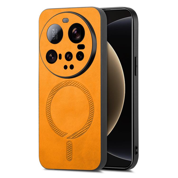For Xiaomi 15 Ultra Solid Color Retro Magsafe PU Back Cover Phone Case(Yellow)