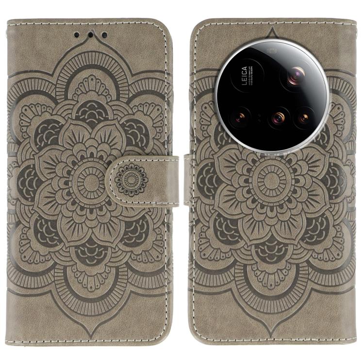 For Xiaomi 15 Ultra Sun Mandala Embossing Pattern Phone Leather Case(Grey)