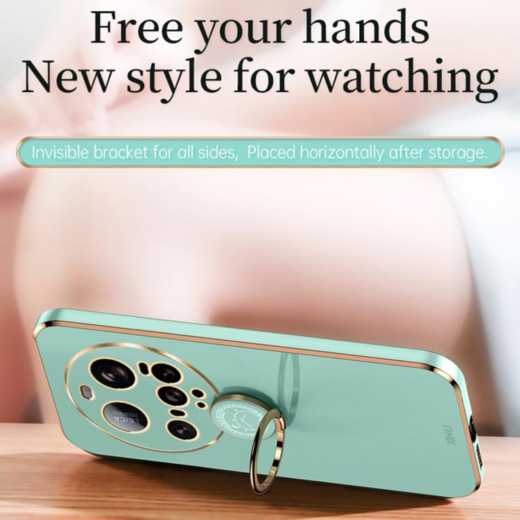 For Xiaomi 15 Ultra XINLI Straight Edge 6D Electroplate TPU Phone Case with Ring Holder(Mint Green)