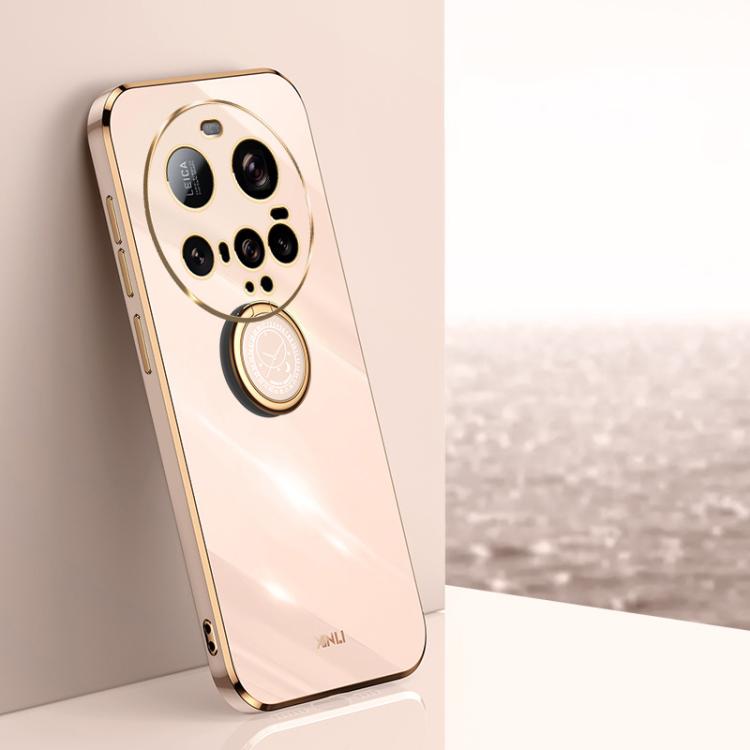 For Xiaomi 15 Ultra XINLI Straight Edge 6D Electroplate TPU Phone Case with Ring Holder(Pink)
