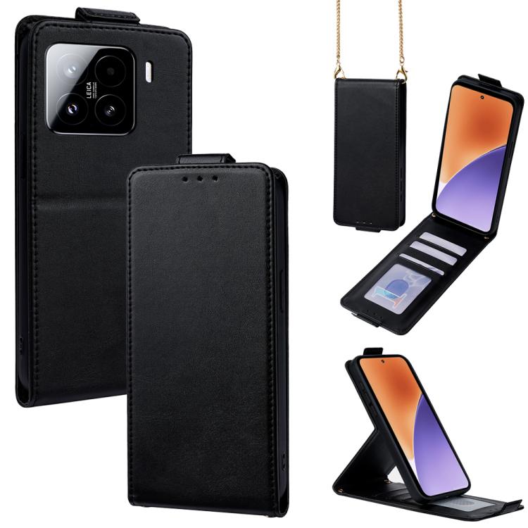 For Xiaomi 15 Vertical Flip Cover Solid Color Vegan Leather Phone Case with Crossbody Chain(Black)